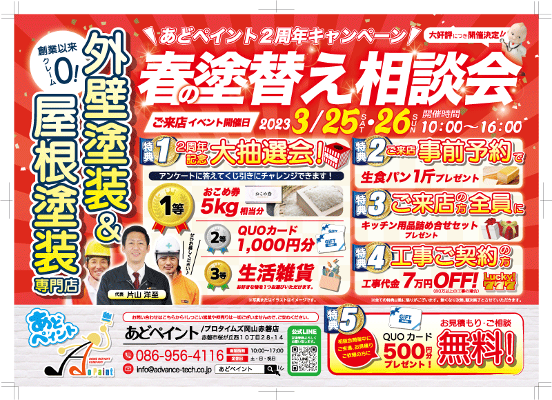あどペイントが無事に3年目を迎えることができたのも、赤磐のお客様のお陰です!
